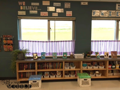 I love the look of my library this year. I attached wall files to hold my thinner books. Above the windows are awesome posters from {The Brown Bag Teacher} and {Digital: Divide and Conquer}.